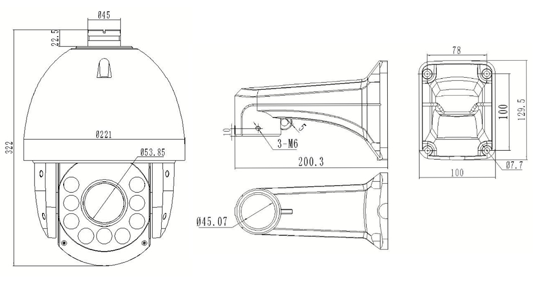 Kecepatan Pan | Dapat dikonfigurasi, PAN: 0,1 ° - 150 °/s; Kecepatan preset: 180 °/s |